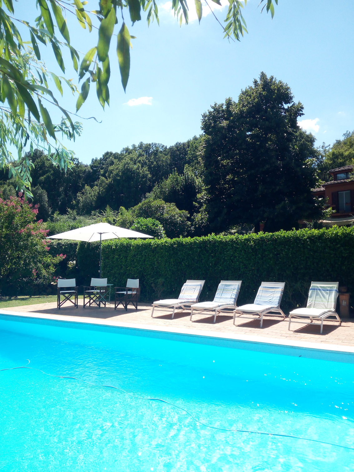 Rental of the entire apartment (self-catering) includes exclusive use of the salt-water swimming pool and of large areas of the garden (table tennis, badminton, vegetable garden)